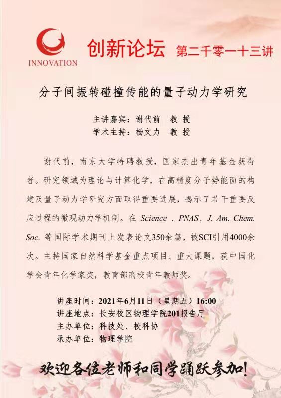 2026世界杯指定网站创新论坛第二千零一十三讲:分子间振转碰撞传能的量子动力学研究