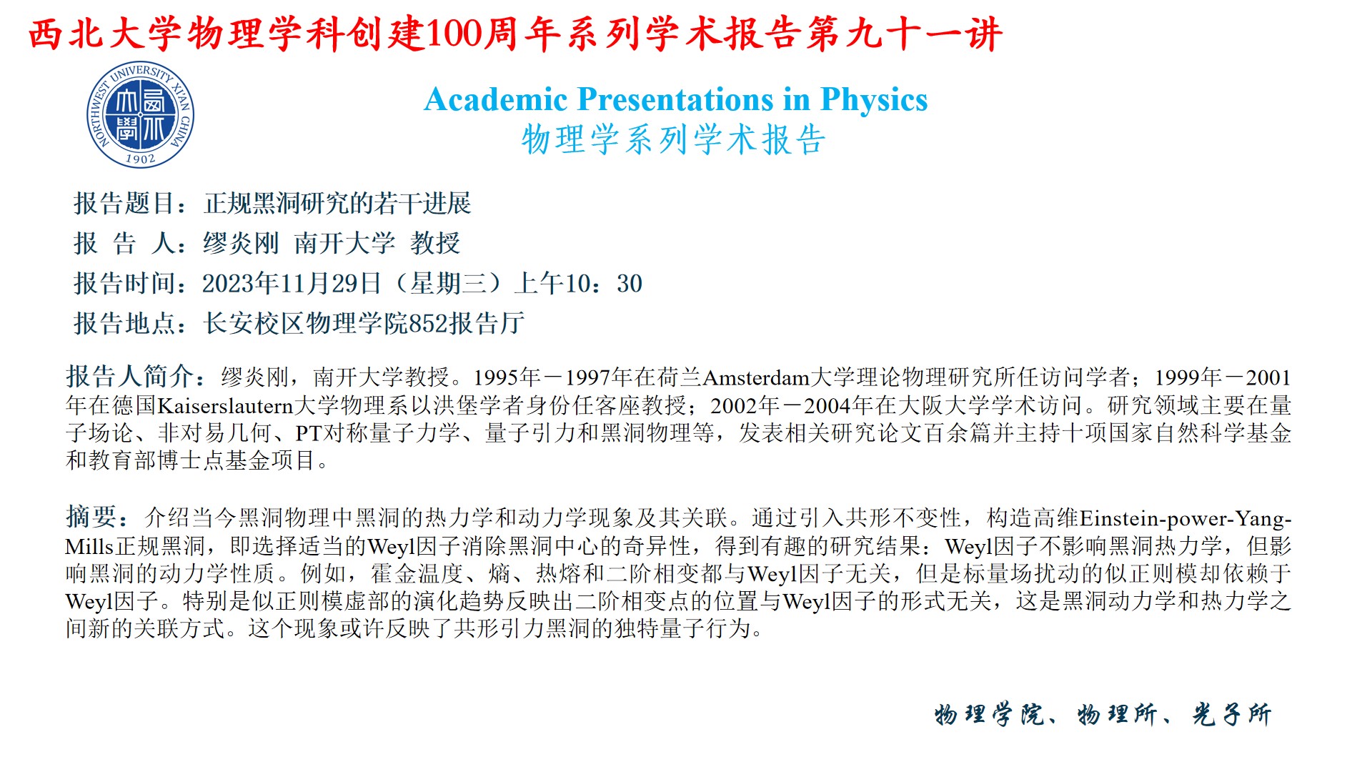 学术报告——正规黑洞研究的若干进展