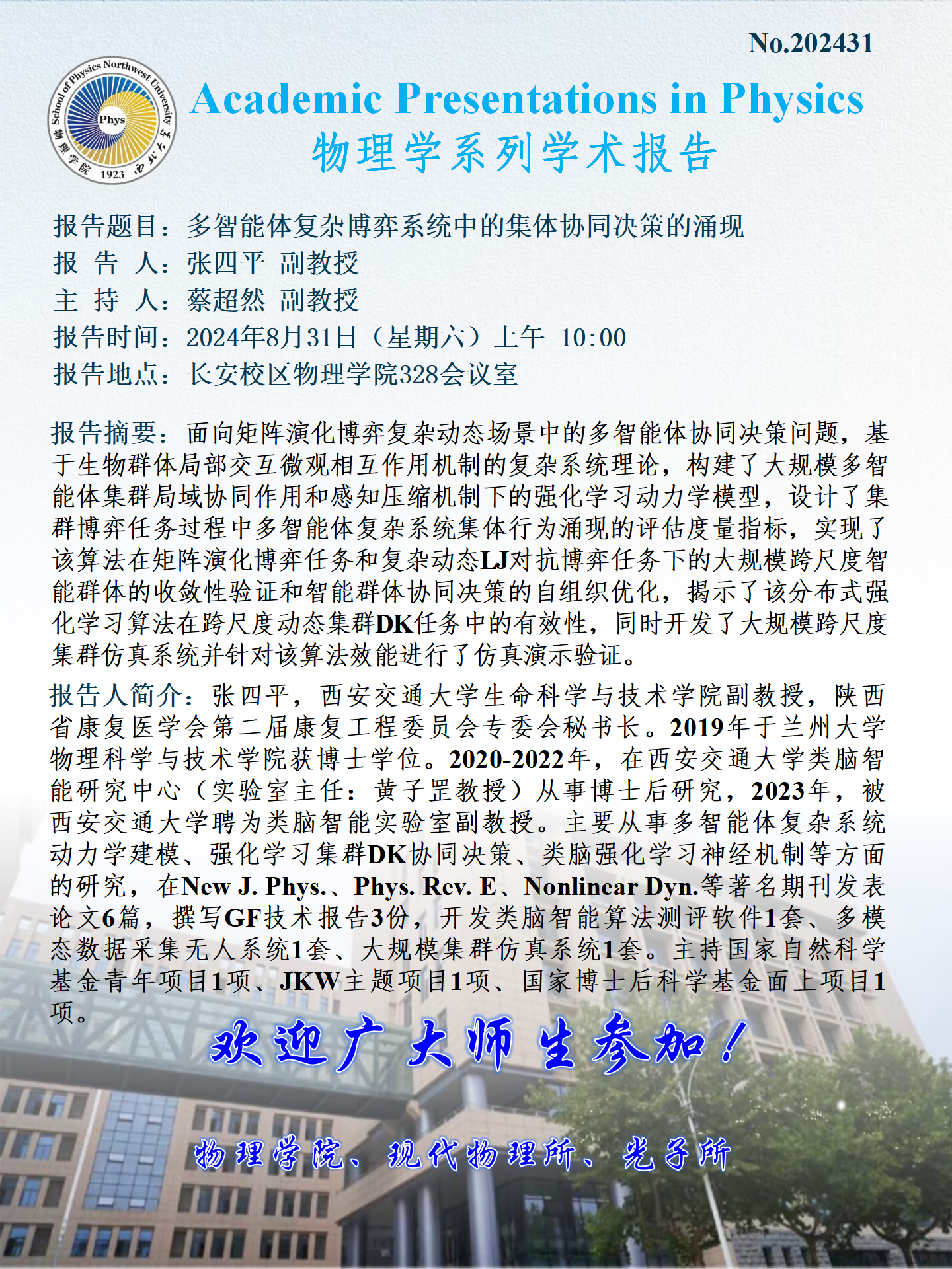 学术报告——多智能体复杂博弈系统中的集体协同决策的涌现
