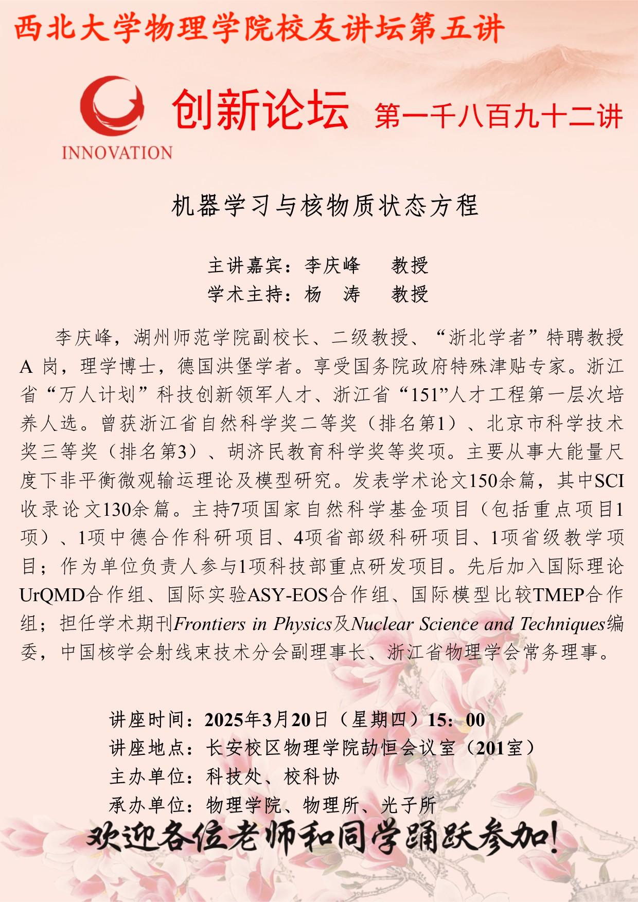 2026世界杯指定网站创新论坛第一千八百九十二讲:机器学习与核物质状态方程
