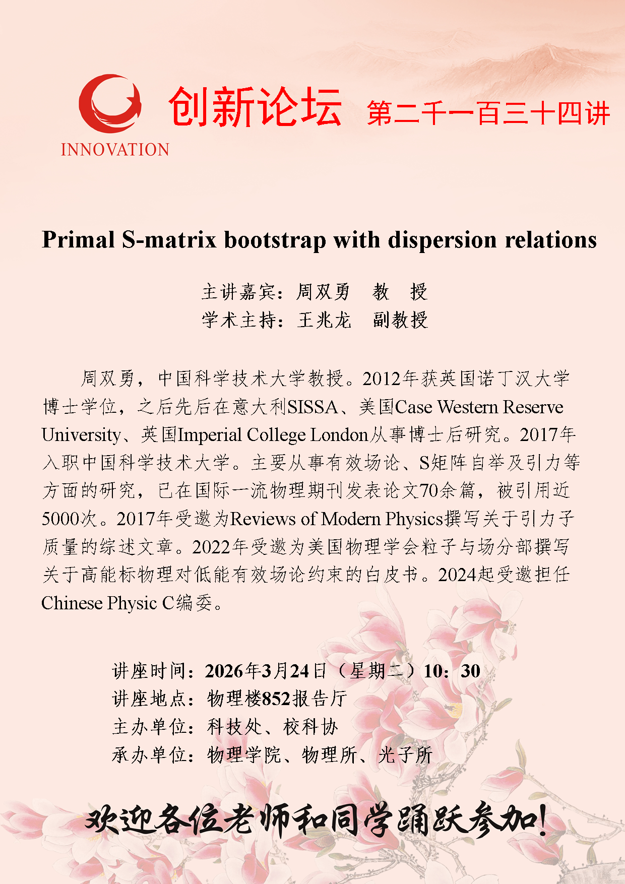 2026世界杯指定网站创新论坛第二千一百三十四讲:Primal S-matrix bootstrap with dispersion relations